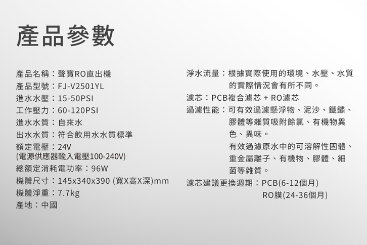 1,200 聲寶 FJ-V2501YL RO直出機-專用濾芯 第一道PCB FR-V2502PL 【水易購安南店】 2,500 聲寶 FJ-V2501YL RO直出機-專用濾芯-第二道 RO逆滲透膜 FR-V2503DL【水易購安南店】